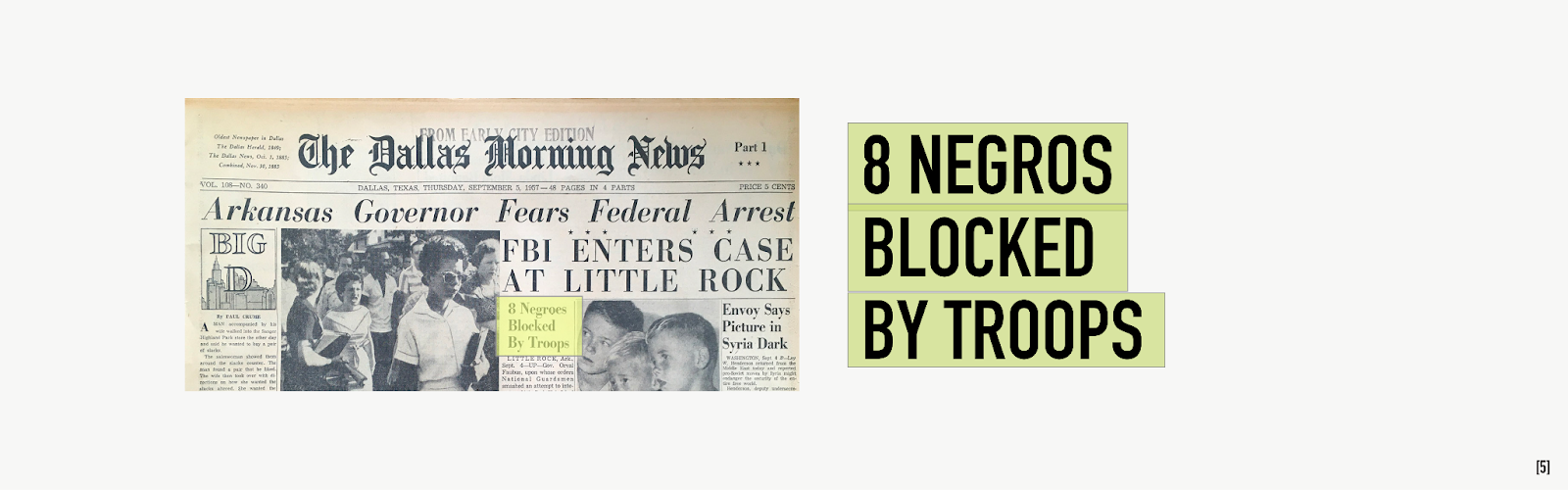 (1957, September 5th). 8 Negros Blocked by Troops. The Dallas Morning News