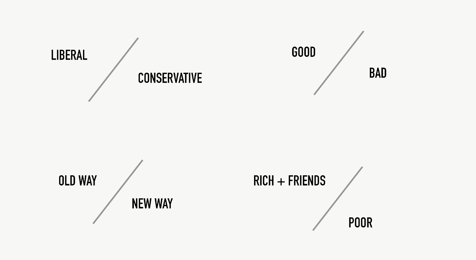 Let’s assume that Duverger is right, that two sides are inevitable in a system like ours. If this is true, then what does it mean to be on the left or the right? How is that dividing line drawn?